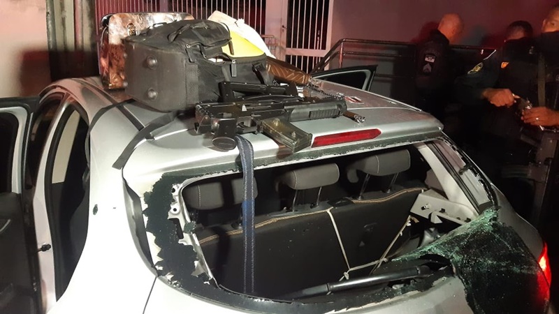 Dentro do veículo, os policiais encontraram um armamento pesado, que parece ser uma metralhadora. No entanto, os militares não atestaram qual seria o armamento.