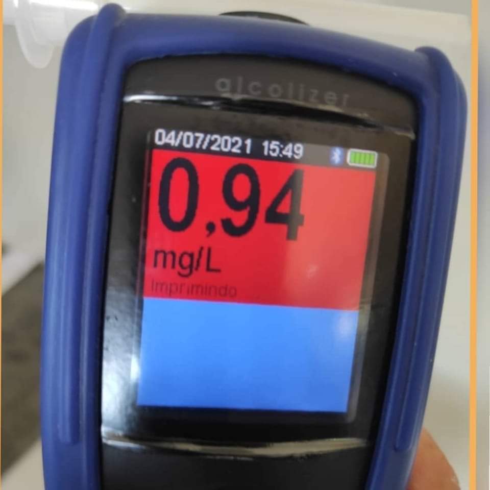 Sobre o acidente: uma colisão que envolveu um veiculo GM Corsa e um veículo Volkswagem Gol. Sobre o flagrante: Os dois condutores foram convidados a realizar o teste com o etilômetro, um deles apresentou o resultado de 0,94 mg/l e o outro 1,42 mg/l de ar alveolar expelido pelos pulmões.