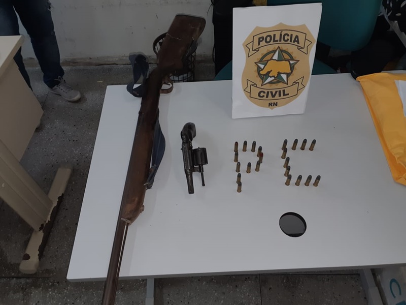 Durantes buscas realizadas na zona oeste da cidade de Caicó em busca da elucidação do crime que ceifou a vida de um adolescente de 15 anos, a Polícia Civil apreendeu duas armas de fogo em poder de ALEXANDRE PINHEIRO GALVÃO, ou “Galego de Bastinha”, o qual foi preso em flagrante e liberado após o pagamento de fiança.