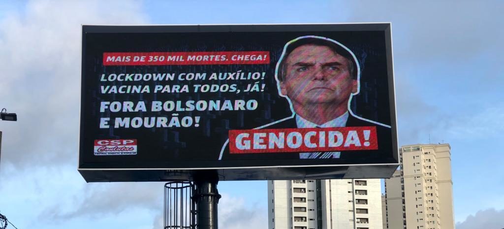 De acordo com o texto, o outdoor patrocinado pela Central Sindical e Popular Conlutas e localizado na Avenida Engenheiro Roberto Freire, comete crime contra a honra à figura do Presidente Bolsonaro. “Trata-se, portanto, de um crime dirigido à autoridade do Presidente da República no qual o autor imputa fato ofensivo à dignidade do Chefe do Executivo Federal, eleito democraticamente pelo povo brasileiro, e que fere o Art. 26 da Lei 7.170 – Lei de Segurança Nacional e Crime contra a Honra, Arts. 138 e seguintes do Código Penal”, diz o texto dos ofícios.