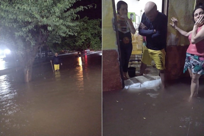 Moradores da Avenida Miguel Cirilo, centro da cidade, em São José do Seridó, tiveram casas invadidas pela água da chuva após 155 milímetros na noite desse sábado, 27 de março de 2021.