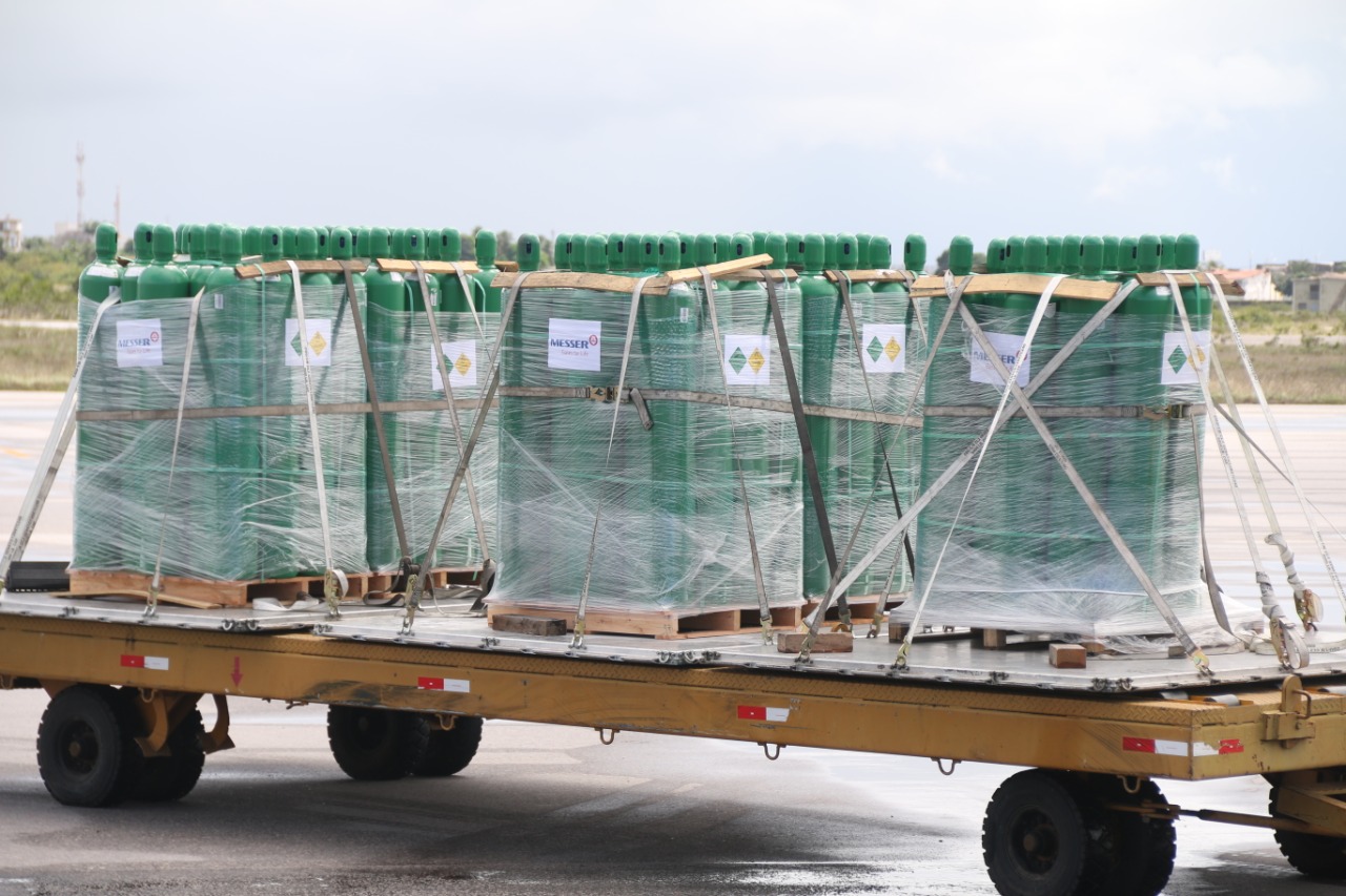 Os 160 cilindros que chegaram hoje fazem parte dos 450 solicitados pela governadora ao Ministério da Saúde para apoiar os municípios, cujos estoques estavam em nível crítico