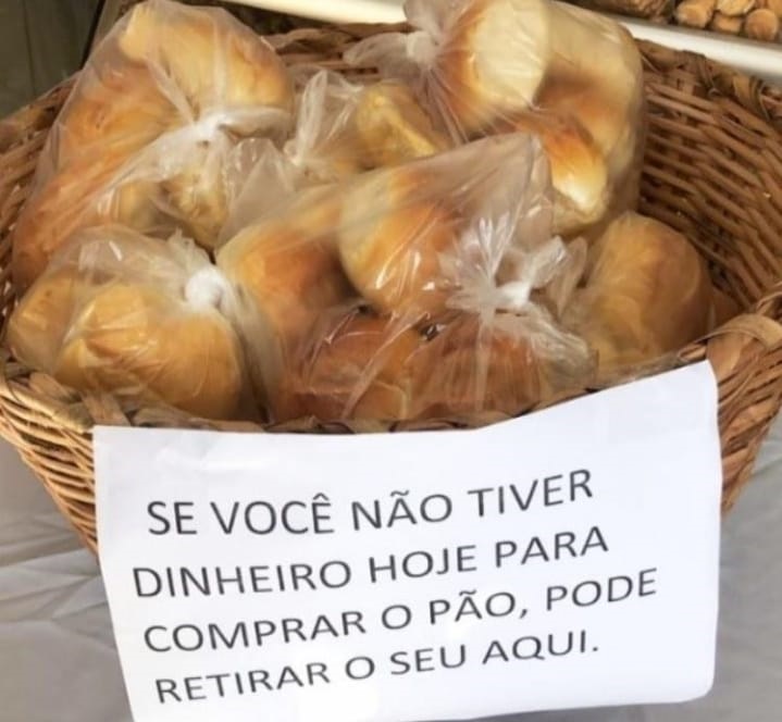 Uma conceituada panificadora localizada na zona sul da cidade de Caicó criou uma ação solidária muito bacana. Embalou pães em uma sacola plástica e deixou junto a uma plaquinha com os seguintes dizeres: “Se você não tiver dinheiro para comprar o pão, pode retirar o seu aqui”.