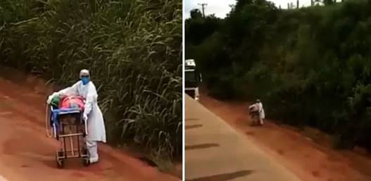 Um vídeo, que viralizou nas redes sociais, mostra um enfermeiro empurrando um paciente em uma maca para tentar desviar do engarrafamento quilométrico formado na BR-230, no município de Itaituba, no sudeste do Pará.