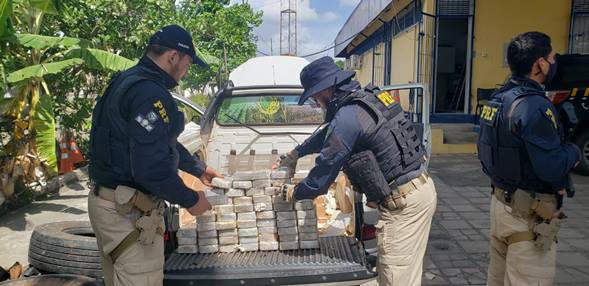 A Polícia Rodoviária Federal apreendeu na Paraíba, nessa terça-feira (02), aproximadamente 60kg de cloridrato de cocaína, mais conhecido como pasta base, sendo transportados em fundo falso de caminhonete. Um homem foi preso em flagrante durante a abordagem.