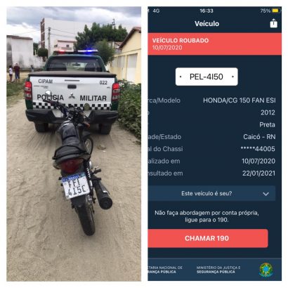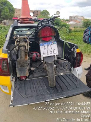 Já os policiais militares do 3° DPRE conseguiram recuperar outra moto, essa totalmente depenada, no bairro Nova Caicó, também na norte da cidade de Caicó, na tarde de hoje.