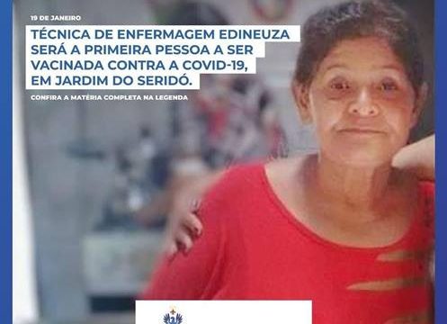 “E é com toda satisfação, que iremos dar esse ponta a pé inicial vacinando a Técnica em Enfermagem, Edineuza, que desempenha seu papel de Profissional de Saúde, há mais de 40 (quarenta) anos , neste município, levando conforto aos doentes em suas casas e mesmo possuindo comorbidades (diabetes) não deixou de realizar seus atendimentos e assistência aos doentes de nossa cidade durante a Pandemia”.