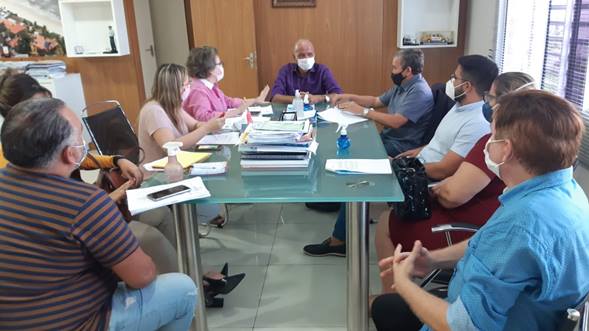 O prefeito Rosano Taveira se reuniu, na tarde desta segunda-feira (18), com a secretária de Saúde Terezinha Rêgo e a equipe técnica da Sesad para fazer a revisão final do plano de vacinação contra a Covid-19 em Parnamirim.