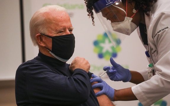 O presidente eleito dos Estados Unidos, Joe Biden, de 78 anos, recebeu nesta segunda-feira (21) a primeira dose da vacina contra a Covid-19 desenvolvida pelas farmacêuticas Pfizer e BioNTech. “Nós devemos muito aos profissionais da saúde, nós devemos muito a vocês”, disse Biden à enfermeira Tabe Masa, responsável pela injeção, após ser vacinado.