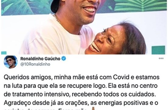 O ex-jogador de futebol Ronaldinho Gaúcho informou na tarde desta segunda-feira (21), por meio do Twitter, que a mãe Miguelina Elói Assis dos Santos, está internada no Centro de Terapia Intensiva (CTI) tratando a Covid-19.
