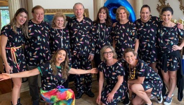 A família de Silvio Santos fez uma festa neste sábado (12.dez.2020) para comemorar os 90 anos do magnata da televisão brasileira. O apresentador, em isolamento desde março, posou para as fotos usando um pijama estampado. Seus familiares estavam com roupas do mesmo tecido.