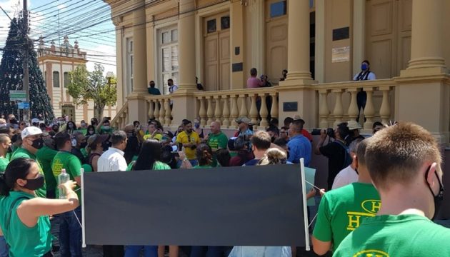 Comerciantes protestaram na tarde da última sexta-feira (11) contra as medidas de restrição anunciadas pela Prefeitura de Pelotas, na Região Sul do estado. A cidade foi classificada em bandeira preta, de altíssimo risco epidemiológico para o coronavírus, conforme o mapa preliminar do distanciamento controlado divulgado também esta tarde.