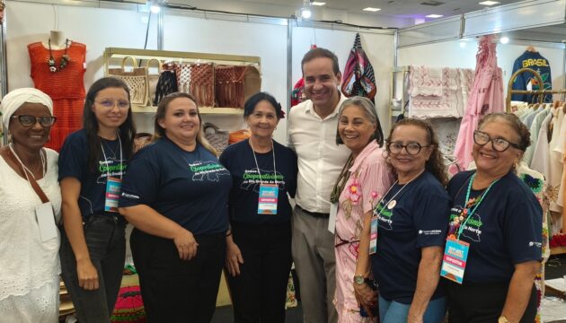 Cadu visitou também o estande do Banco do Nordeste, um importante parceiro dos micro e pequenos empreendedores artesanais presentes na feira internacional. No local, o secretário cumprimentou a equipe do banco, parabenizou os profissionais e tirou fotos com visitantes.