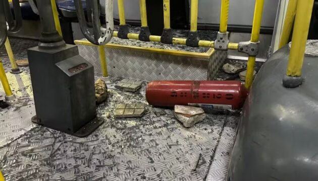 O ônibus foi levado para a delegacia de plantão da Zona Norte. Vidros do para-brisa e das laterais estavam quebrados. O painel de bilhetagem também foi destruído.