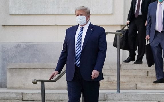 Usando máscara, ele saiu caminhando pela porta da frente e fez um sinal de positivo, antes de entrar em um carro que o levou até o helicóptero. Ainda não completamente curado, ele prosseguirá recebendo cuidados na Casa Branca, onde uma equipe estará disponível durante 24 horas, de acordo com seu médico, Dr. Sean Conley.