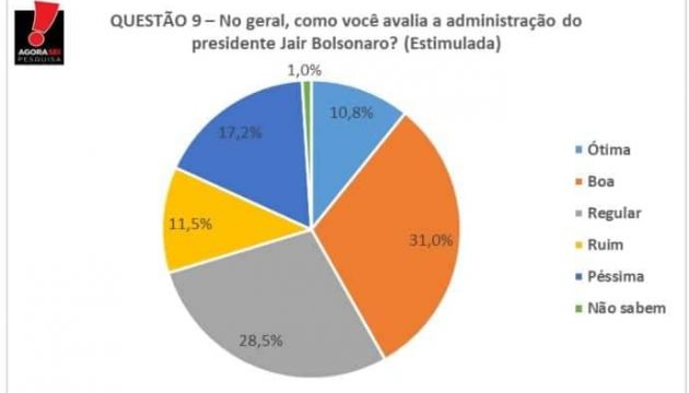 Na avaliação do governo federal os eleitores de Lagoa Nova consideram que Bolsonaro faz uma boa gestão, com aprovação de 31%. Sua gestão é considerada apenas “regular” por 28,5%. O resultado geral da sua gestão é a seguinte: