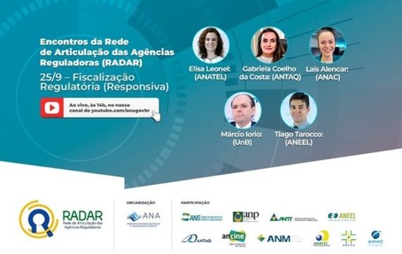 A terceira edição da série de encontros virtuais da Rede de Articulação das Agências Reguladoras (RADAR) será realizada nesta sexta-feira (25/9). O evento tem como tema a Fiscalização Regulatória (Responsiva). O encontro será transmitido ao vivo a partir das 14h pelo canal oficial da ANAC no YouTube.
