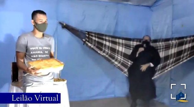 No início da live, o padre aparece balançando na rede e cantando uma música. “Quando chegar a hora da live, meu amor, acorde eu, acorde eu.” Em seguida, ele cumprimenta os fiéis e começa o leilão.