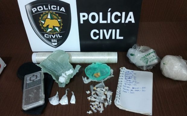 A equipe de Policiais Civis de MACAÍBA, na manhã de hoje (10), fechou um ponto de venda de drogas estabelecido na cidade de Bom Jesus/RN. No local, foram apreendidas drogas (COCAÍNA e CRACK), balança de precisão, aparelhos celular, além de diversos insumos para o embrulho e comercialização dos entorpecentes.