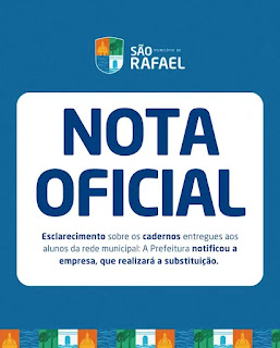 A Prefeitura de São Rafael divulgou, na última terça-feira (12/03), uma nota oficial, na qual se pronuncia sobre o caso de distribuição de cadernos escolares com adesivos cobrindo a logomarca de outro município.