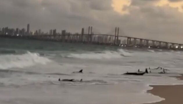 Um encalhe coletivo de golfinhos registrado na Praia da Redinha, na Zona Norte de Natal, mobilizou equipes ambientais no início da noite deste domingo (4). Ao todo, cerca de dez animais foram vistos na faixa de areia, em uma ocorrência considerada complexa por envolver um grupo de golfinhos ainda vivos.