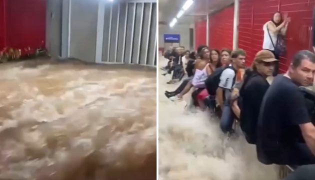 Vídeos que circulam nas redes sociais mostram que uma grande quantidade de água estava descendo da parte superior da estação até a plataforma. A escada rolante se transformou em uma verdadeira cachoeira.