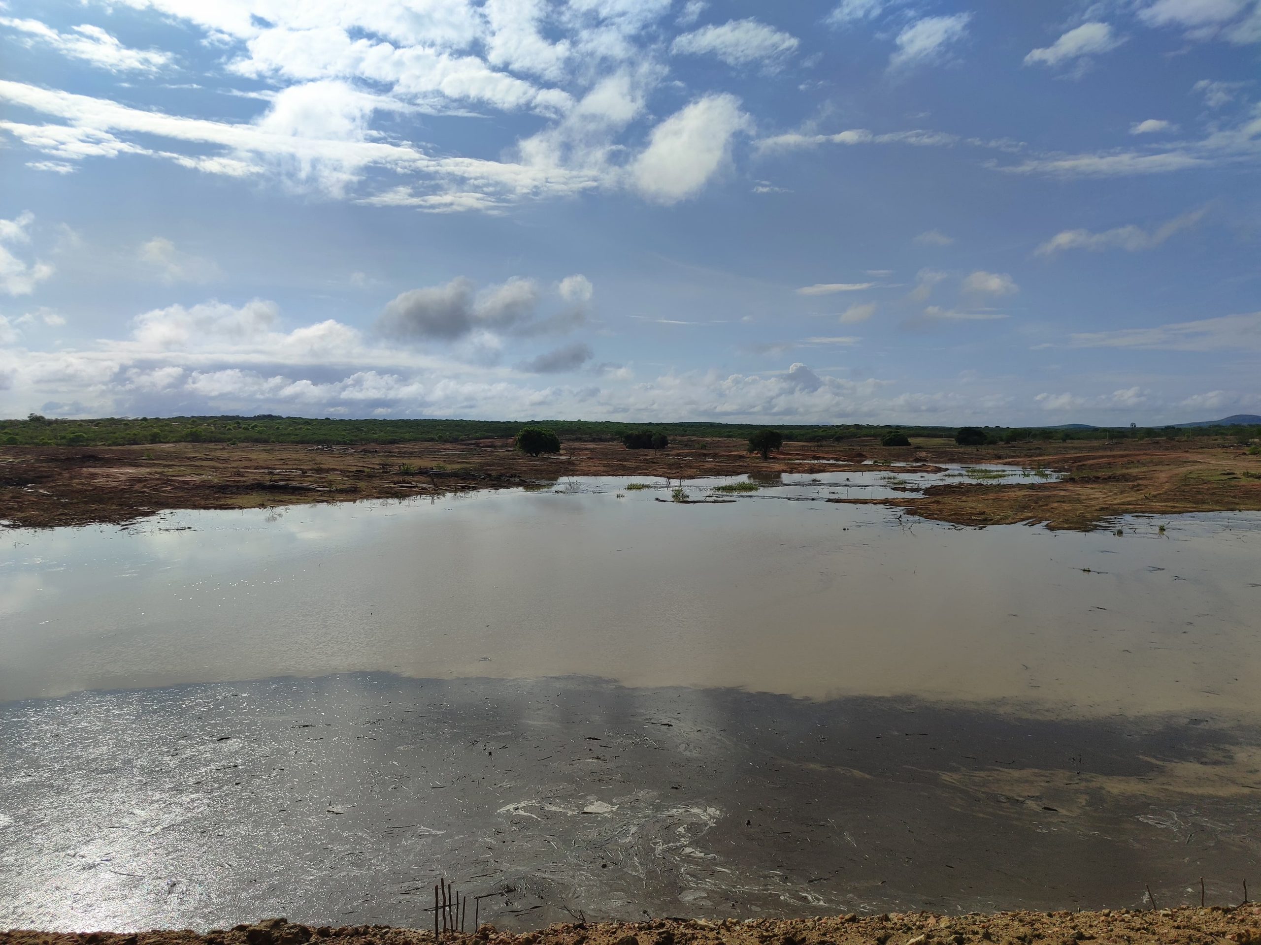 O açude público Riacho da Volta que será inaugurado em Março próximo amanheceu hoje com suas primeiras água, o que deixa todos os timbaubenses alegres.