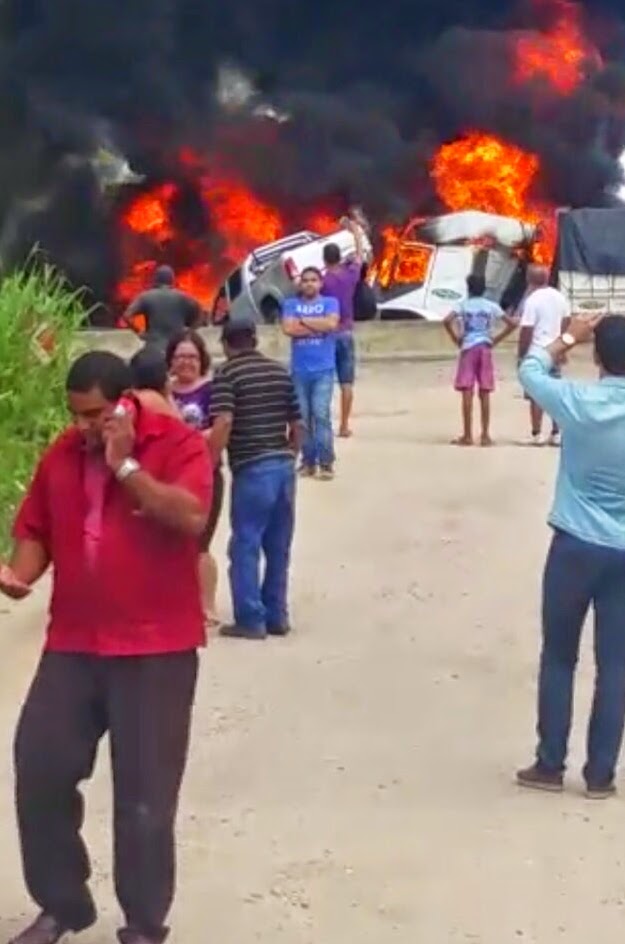 O condutor informou que não teve tempo de frear.Logo após a batida, a carreta, que estava carregada com 30 toneladas de produtos químicos, pegou fogo, atingindo os demais veículos envolvidos no engavetamento. O motorista da bitrem saia de Aracaju com destino a Brasília.