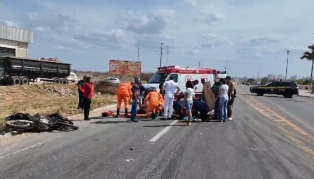 Um acidente de trânsito foi registrado nesta quinta-feira (7) na BR-304, em Mossoró. Uma moto e um veículo colidiram, deixando o condutor e o passageiro da motocicleta bastante feridos.