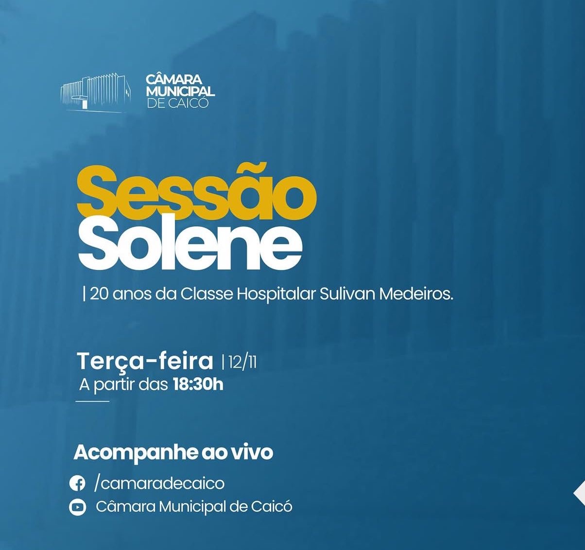 Na próxima terça-feira, dia 12 de novembro, a partir das 18h30, a Câmara de Vereadores de Caicó realizará uma sessão solene para homenagear os 20 anos da Classe Hospitalar Sulivan Medeiros, uma iniciativa que tem transformado a vida de crianças e adolescentes em tratamento hospitalar, oferecendo acompanhamento educacional durante o período de internação. A proposição da homenagem foi feita pelo vereador Diogo Silva, que destacou a importância do trabalho da instituição para a educação e o bem-estar das crianças hospitalizadas.