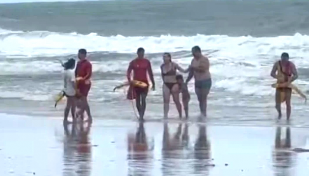 No local, havia um posto de bombeiros com quatro militares, um deles entrou para fazer o resgate no momento que viu a situação. O esposo da mulher também entrou no mar para ajudar.