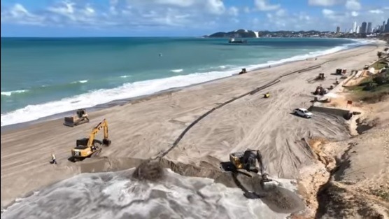 De acordo com informações do secretário de Meio Ambiente e Urbanismo, Thiago Mesquita, já foram colocados cerca de 250 mil a 300 mil m³ de aterro, gerando mais de 600m de faixa de areia.
