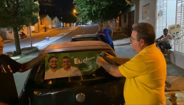 Vândalos hostilizam carro de policial em Triunfo Potiguar por causa de adesivos de candidatos