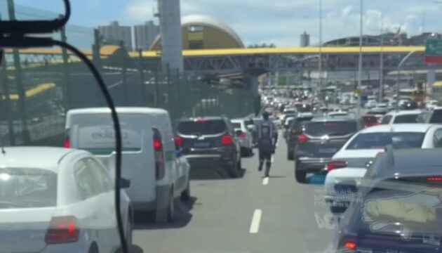 Diante da situação, um dos médicos decidiu sair da viatura e se dirigir aos veículos para tentar conscientizar os condutores e liberar a via.