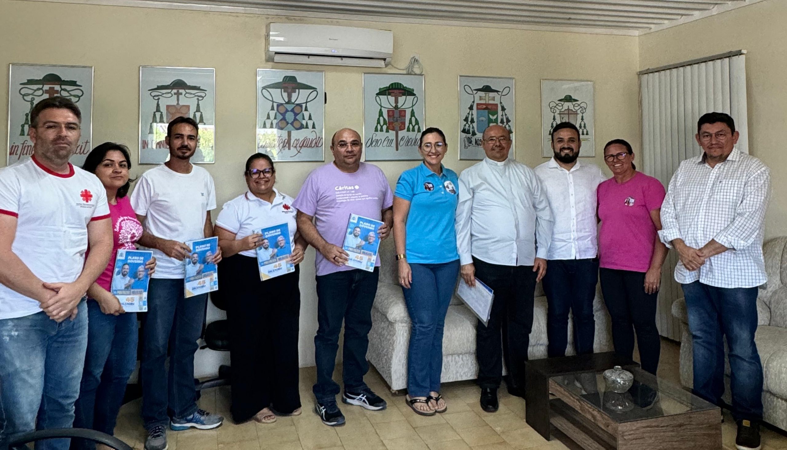 Nesta quarta-feira (18), o prefeito de Caicó e candidato à reeleição, Dr. Tadeu, visitou o Centro Pastoral Dom Wagner ao lado do professor e coordenador do Plano de Governo Sérgio André. Durante a ocasião, eles se reuniram com representantes da Cárita, Grupo de Mulheres, Pastoral da Criança e do Adolescente, além do administrador diocesano, Padre Edson, para discutir projetos e avanços em prol da comunidade.