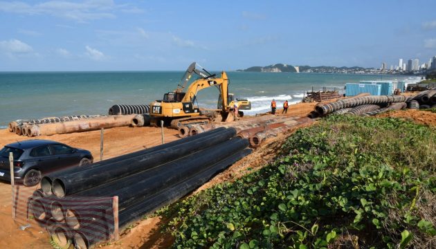 Canteiro de obras da engorda de Ponta Negra recebe primeiros equipamentos