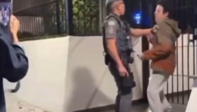Testemunhas gravaram o momento em que ela agrediu um dos agentes com um tapa na cara.