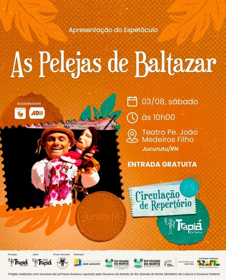 O Projeto Circulação Repertório Trapiá RN encerra sua programação em Jucurutu, neste sábado, 03, com duas apresentações, no Teatro Pe. João Medeiros Filho.