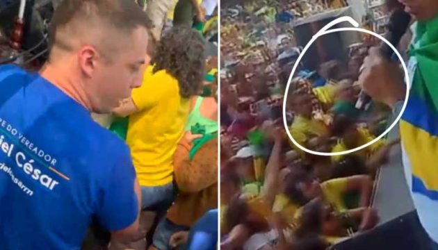 Apesar do pequeno público no comício de Salatiel de Souza, que recebeu o “Ex mais amado do Brasil”, ontem em Parnamirim, houve registro de tumultos devido às várias tentativas de aproximação das pessoas a Jair Bolsonaro, no entanto um caso mais sério, e até merece ser investigado, aconteceu na frente do palco do evento.