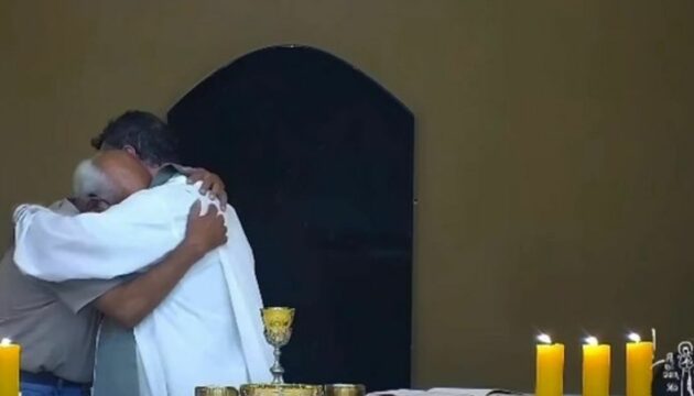 A cena de acolhimento comoveu os fiéis presentes, e o vídeo repercutiu amplamente nas redes sociais.