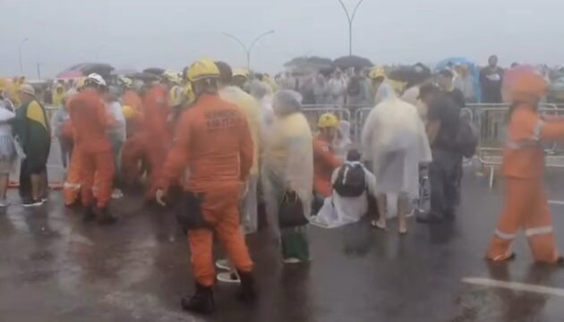 O raio caiu pouco antes das 13h, e bombeiros militares que já monitoravam o ato montaram uma tenda de emergência para os primeiros atendimentos.