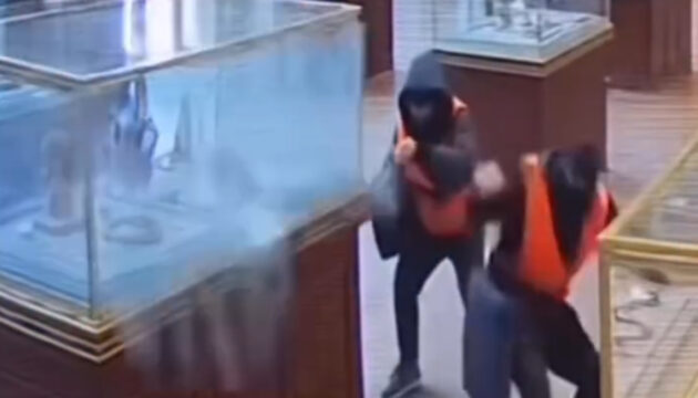 No vídeo, dois homens aparecem descendo rapidamente a estrutura enquanto sirenes ecoam ao fundo. Um deles veste roupas pretas e capacete, enquanto o outro usa um colete amarelo. Na base do guindaste, um terceiro comparsa aguarda para dar cobertura à fuga. As gravações mostram que a ação foi planejada com precisão e executada em meio à movimentação de turistas e seguranças do museu.