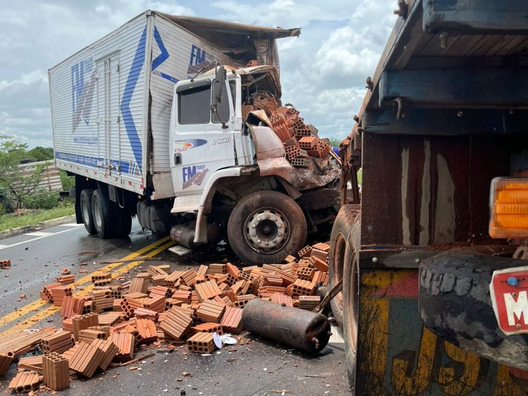 A ocorrência envolveu um caminhão baú e outro veículo de carga que transportava tijolos. Até as 14h55, o Samu confirmou a morte de uma das vítimas ainda no local da batida. O número total de feridos e o estado de saúde destes ainda não foram oficialmente divulgados.