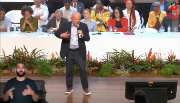 O discurso de Lula foi recebido com aplausos pela militância do PCdoB e integrantes da base governista, que reforçaram o coro: “Hugo Motta tem que cassar o Eduardo Bolsonaro”.