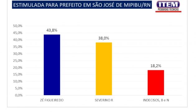 De forma estimulada, quando os entrevistados escolhem um dos nomes citados pelo entrevistador, Zé Figueiredo ficou com 43,8%, enquanto o segundo colocado pontuou 38%, ficando o que estão indecisos, votarão em branco ou anularão os votos com 18,2%.
