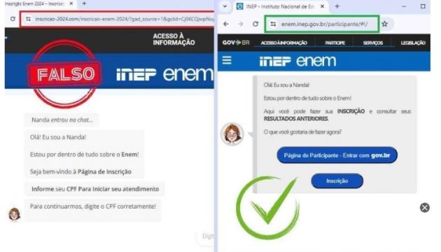 Estudantes interessados em prestar a edição deste ano do Enem (Exame Nacional do Ensino Médio) foram vítimas de golpes. Um site falso foi criado imitando o endereço oficial de inscrição na prova —cores, fonte e até recurso de assistente virtual eram iguais.