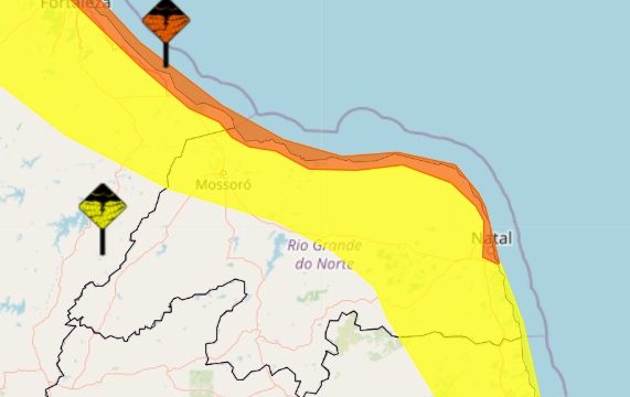 O Instituto Nacional de Meteorologia (Inmet) emitiu um alerta de chuvas intensas de até 50 milímetros para 108 cidades do Rio Grande do Norte. O aviso é válido até 10h deste sábado (1º) e é da cor amarela (perigo potencial), o primeiro nível no grau de severidade do órgão.