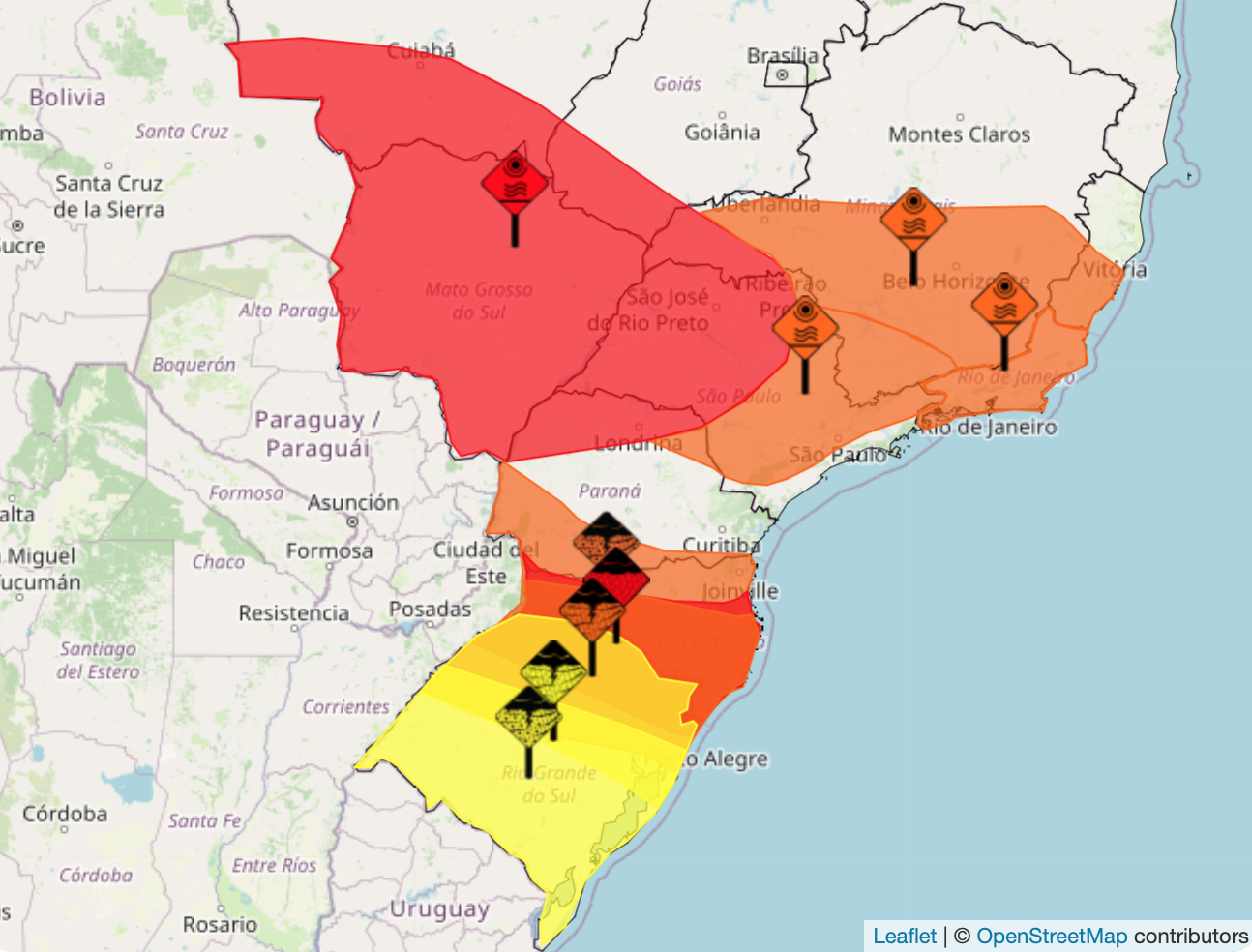 Os alertas em questão estão válidos até pelo menos meio-dia de sábado (4). Além dos alertas em vermelho, há ainda outros chamando a atenção para o risco de tempestade e de chuvas intensas.