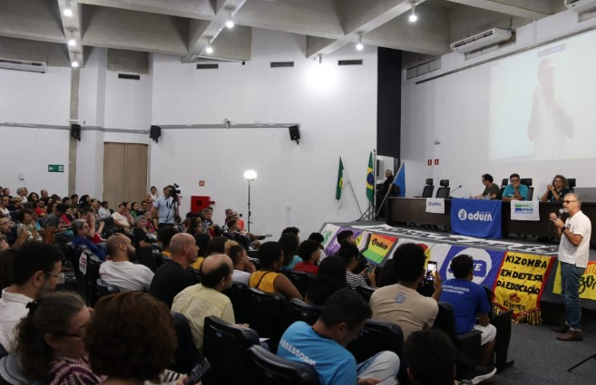 Os professores da Universidade Federal do Rio Grande do Norte (UFRN) seguem em greve por tempo indeterminado. A decisão pela continuidade do movimento foi aprovada por ampla maioria em assembleia extraordinária que contou com a participação de mais de 340 docentes. O debate ocorreu na tarde desta quarta-feira (24), presencialmente, no auditório Otto de Brito Guerra, na reitoria da UFRN, e remotamente, através da plataforma Zoom.