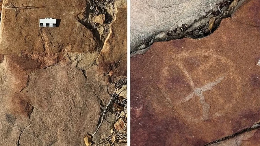 Pesquisadores brasileiros apresentaram um estudo em que descrevem gravuras rupestres de até 9 mil anos, associadas a pegadas de dinossauros de milhões de anos. As gravuras foram feitas por povos pré-coloniais no sertão da Paraíba e algumas delas imitam as pegadas desse animais.